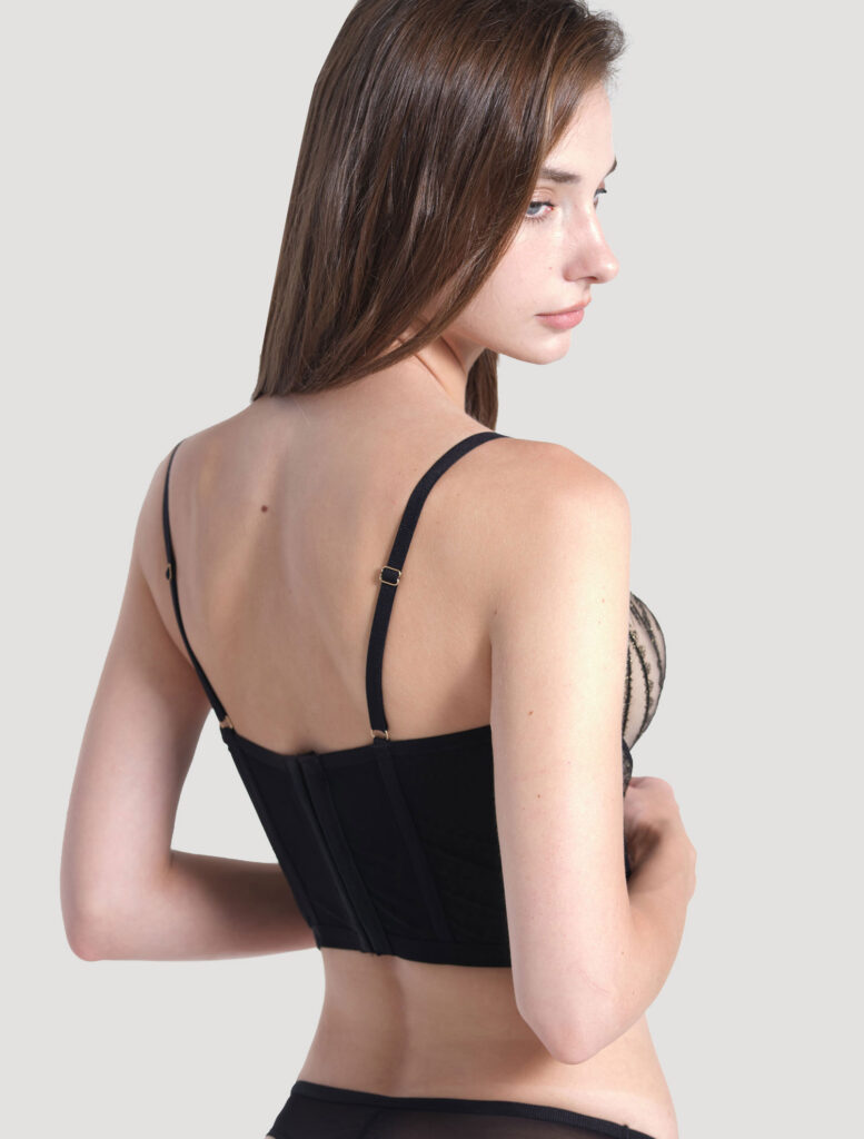 This Embroiderer Lace Corset Top is ingeniously designed with a cup and wide soft boning structure, offering excellent support while accentuating your waistline. The hollow-out detail under the chest adds a sensual flair. Adorned with shimmering metallic lace, this corset creates a dazzling effect, instantly elevating your style. Whether worn under coats or jackets or as a standout piece, this corset promises a charming and worry-free experience.
