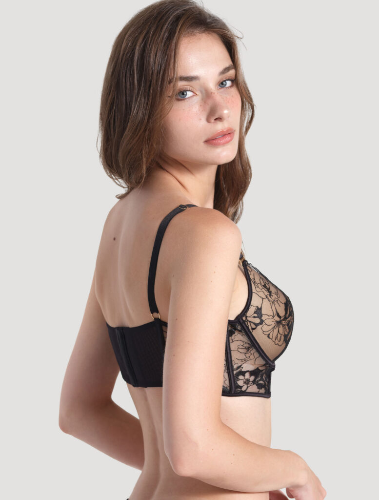 Our Lace Longline Push-Up Bra combines luxury with functionality. The broad back hook-and-eye closure ensures optimal support and a secure fit, while exquisite embroidery lace adorning the full cup and under-chest line offers a classic, refined look. Its soft, breathable cups provide not only comfort but a subtle, enhancing lift, ideal for adding a touch of glamour to your everyday style.