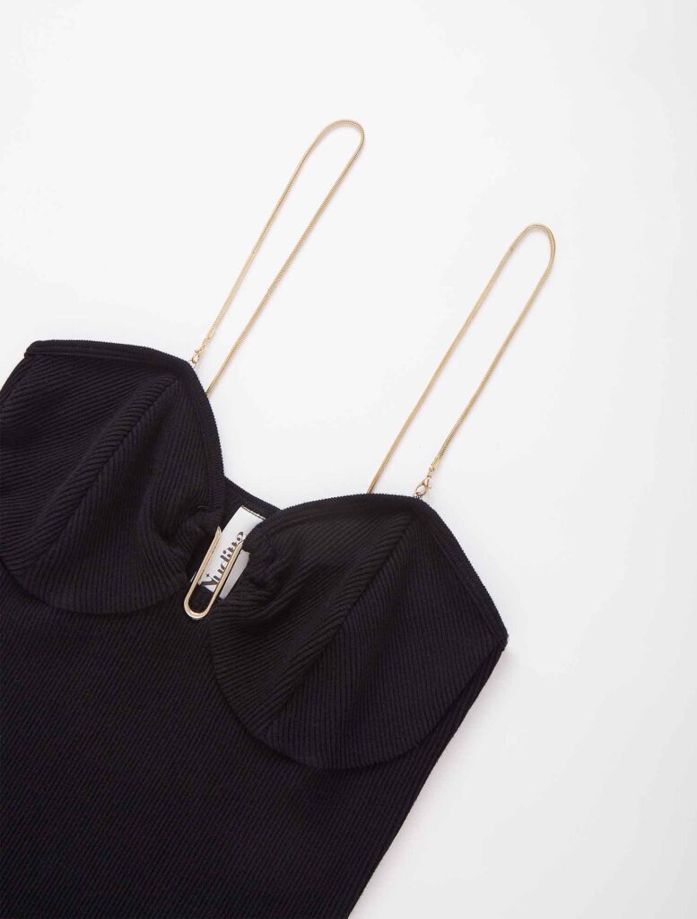 Embrace chic simplicity with our 2024 new release, the Seamless Bustier Mini Dress, crafted using seamless technology. With sleek metal chain straps and a distinctive M-buckle, our Seamless Corset Mini Dress marries minimalism with a touch of elegance. The entire garment is made from bamboo fiber fabric, adding a whisper of comfort to its refined silhouette.