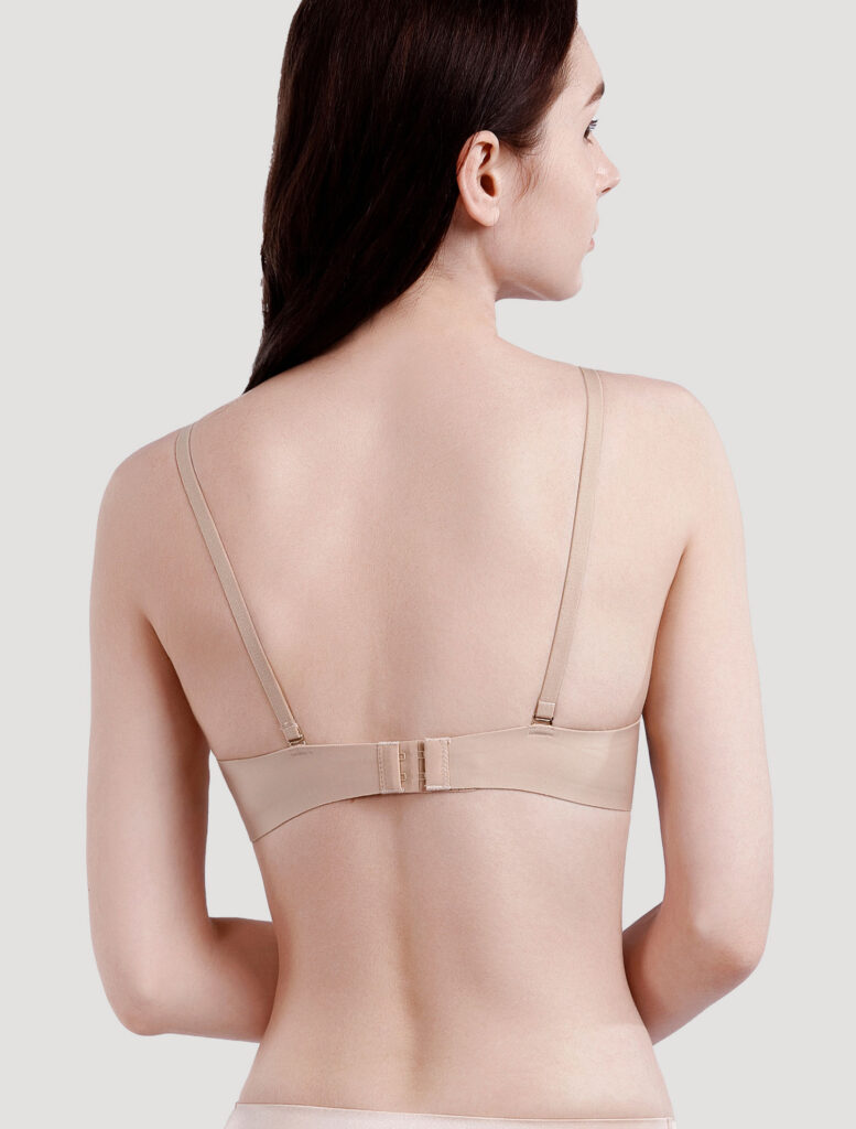This Ultra-Soft Microfiber Underwire Bra, crafted from premium microfiber, provides a seamless and smooth fit. Its moulded cups feature super-light, breathable padding, offering exceptional support without added bulk. The design is elevated by a unique V-shape metal embellishment at the central front, adding a touch of contemporary elegance. This bra combines sleek comfort, understated elegance, and a fashionable edge, making it an essential addition to your lingerie collection.