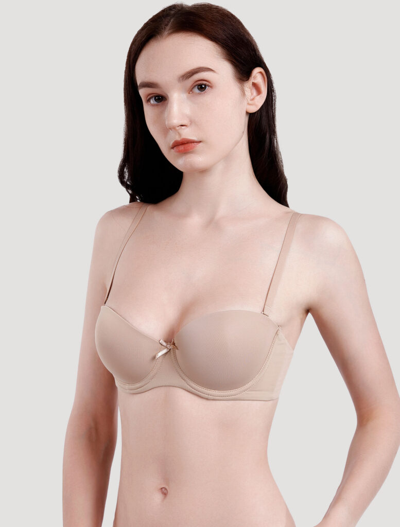 The Underwire Seamless T-Shirt Bra is a testament to understated charm and comfort. This balconette underwire bra, made from premium microfiber, offers a smooth, contoured fit. Its moulded cups are equipped with lightweight, breathable padding for superior support. Finished with a dainty ribbon bow detail on the front, it’s a perfect fusion of practicality and subtle elegance.