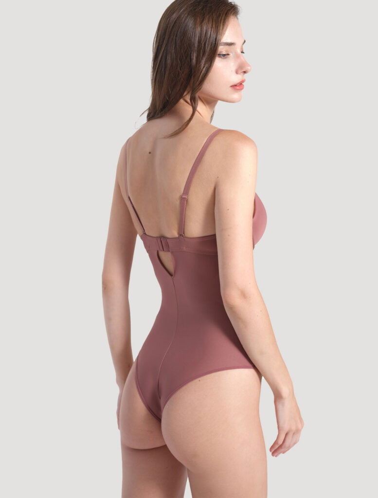 Experience the perfect blend of comfort and elegance with our V-Neckline Underwire Bodysuit. Crafted with high-stretch, soft fabric, it hugs your body gently, ensuring a snug fit without compromising on comfort. Featuring unique triangle hollow out design under the bust. Whether layered or worn alone, this bodysuit is a versatile addition to your collection, perfect for creating diverse looks.